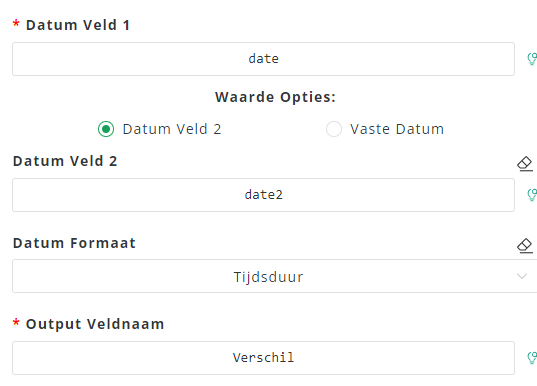 - Input veldnaam: Geef het basisveld aan dat als basis gaat doen. Dit moet een datumveld zijn