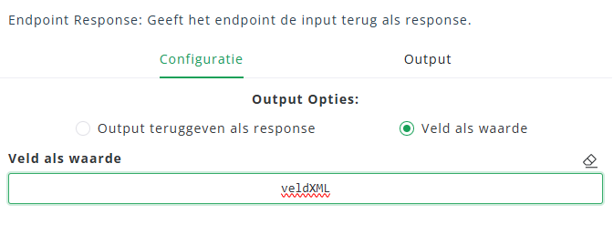 - Kies in de Endpoint Response voor de optie “Veld als waarde”. Kies vervolgens het nieuw gecreëerde veld.