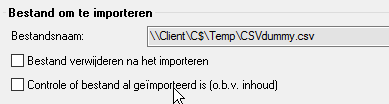 Zet ook het vinkje “Controle of bestand al geïmporteerd is” uit. Dit levert ongewenst gedrag op tijdens het testen in Flow.