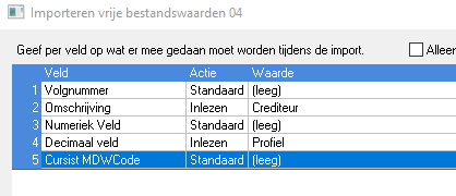 Importbestand veldnaam: In bovenstaand voorbeeld: “Bestand”