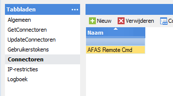 Open de bestaande AppConnector, voeg hierbij Connectoren de “AFAS Remote CMD” aan toe.